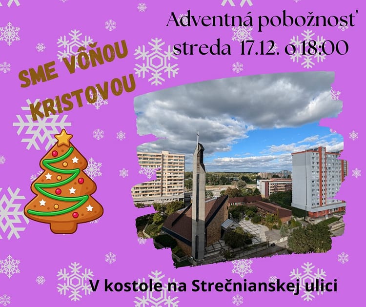 Srdečne vás pozývame na spoločnú adventnú pobožnosť, ktorá sa uskutoční v stredu 17. decembra o 18:00 hod.