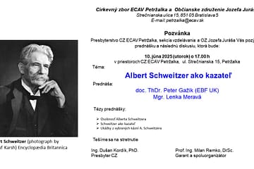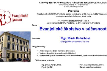 Presbyterstvo CZ ECAV Petržalka, sekcia vzdelávania Vás pozýva na prednášku a následnú diskusiu, ktorá bude na tému: Úvod k listu Židom: Prečo bol napísaný? V akej dobe vznikol a komu bol určený? Prednáška sa uskutoční 14. apríla 2026 (utorok) o 17.00 h v priestoroch CZ ECAV Petržalka a prednesie ju Mgr. Michal Zajden, PhD., evanjelický a.v. Prečítať viac