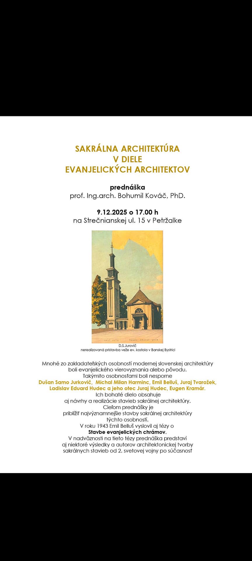Srdečne pozývame na prednášku prof. Ing. arch. Bohumila Kováča, PhD. na tému