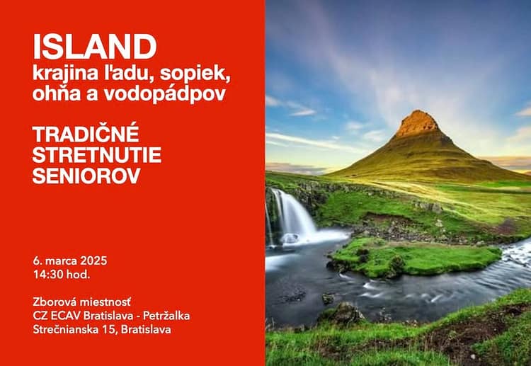 Po duchovnom zamyslení našej pani farárky sa vyberieme na Island, do zaujímavej krajiny sopiek, ohňa, ľadu a vodopádov. Krajinou nás prevedie brat Miloslav Blaho, ktorý pripravil video z jeho 10 dňovej dobrodružnej cesty. Započúvame sa aj do originálnej islandskej hudby.